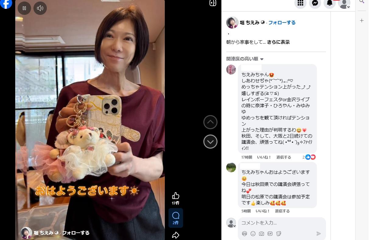 タレントの堀ちえみがブログを更新し、夫との食事の様子を報告した。