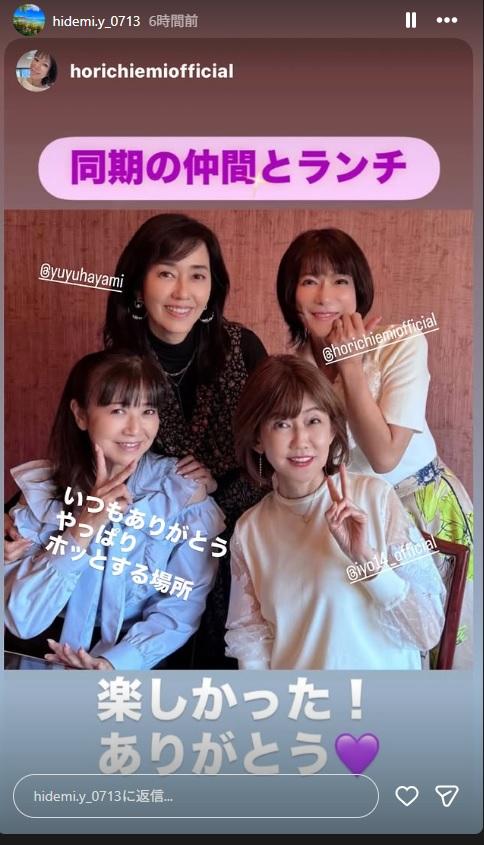 タレントの堀ちえみが、自身のブログを通じて、大阪の友人・かおりさんとその娘さん、そして夫の4人でランチを楽しんだことを報告した。